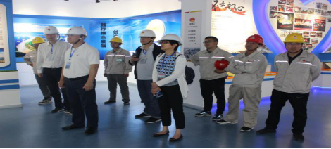白鴻一行先后到興昊永勝鹽業公司鹽庫、鹽銷裝置、熱力裝置、企業文化展廳等地進行實地調研,并在鹽庫進行了合影留念。