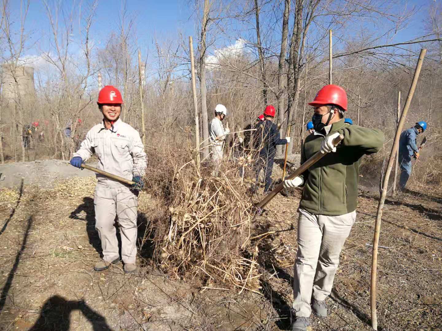 嚴(yán)寒的冬天已經(jīng)來臨,后山樹林落葉堆積較厚,干燥的枯草在風(fēng)中搖曳,存在較大火災(zāi)風(fēng)險(xiǎn)隱患。結(jié)合集團(tuán)公司正在開展的第二批“不忘初心、牢記使命”主題教育實(shí)踐活動(dòng),青銅峽片區(qū)集中組織全體黨員干部和日勤職工開展后山樹林落葉、枯草清理工作。
