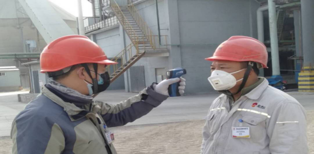 在公司北大門,他們對進出廠區職工及車輛登記,嚴格“疫情”防控工作。