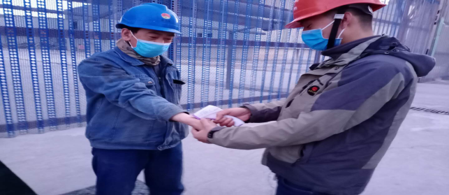 在公司北大門,他們對進出廠區職工及車輛登記,嚴格“疫情”防控工作。