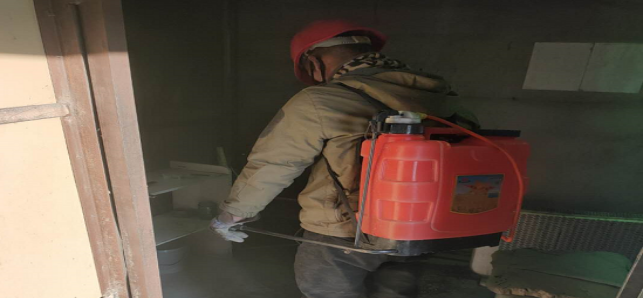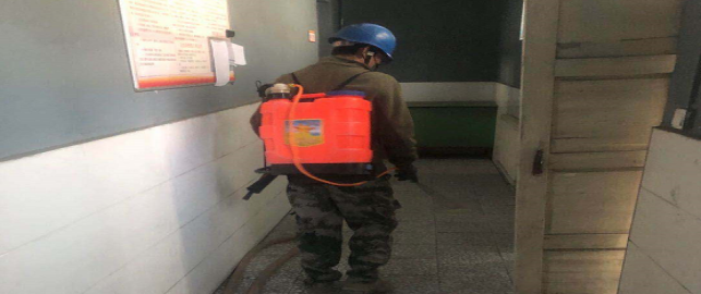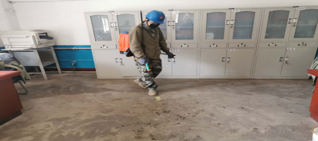 在崗位辦公室消毒。