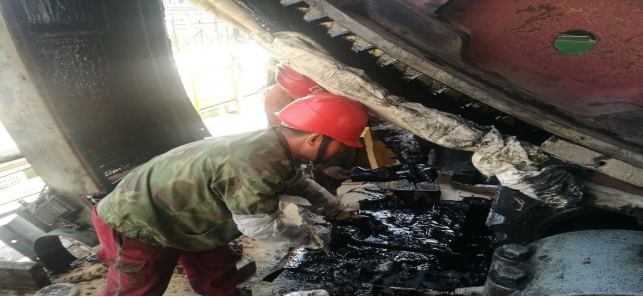 4月27日,此次回轉窯檢修已經迎來了最后的沖刺階段。工作中最頻繁,最臟的,最累的工作任務莫過于回轉窯大齒輪更換機油及校正工作。