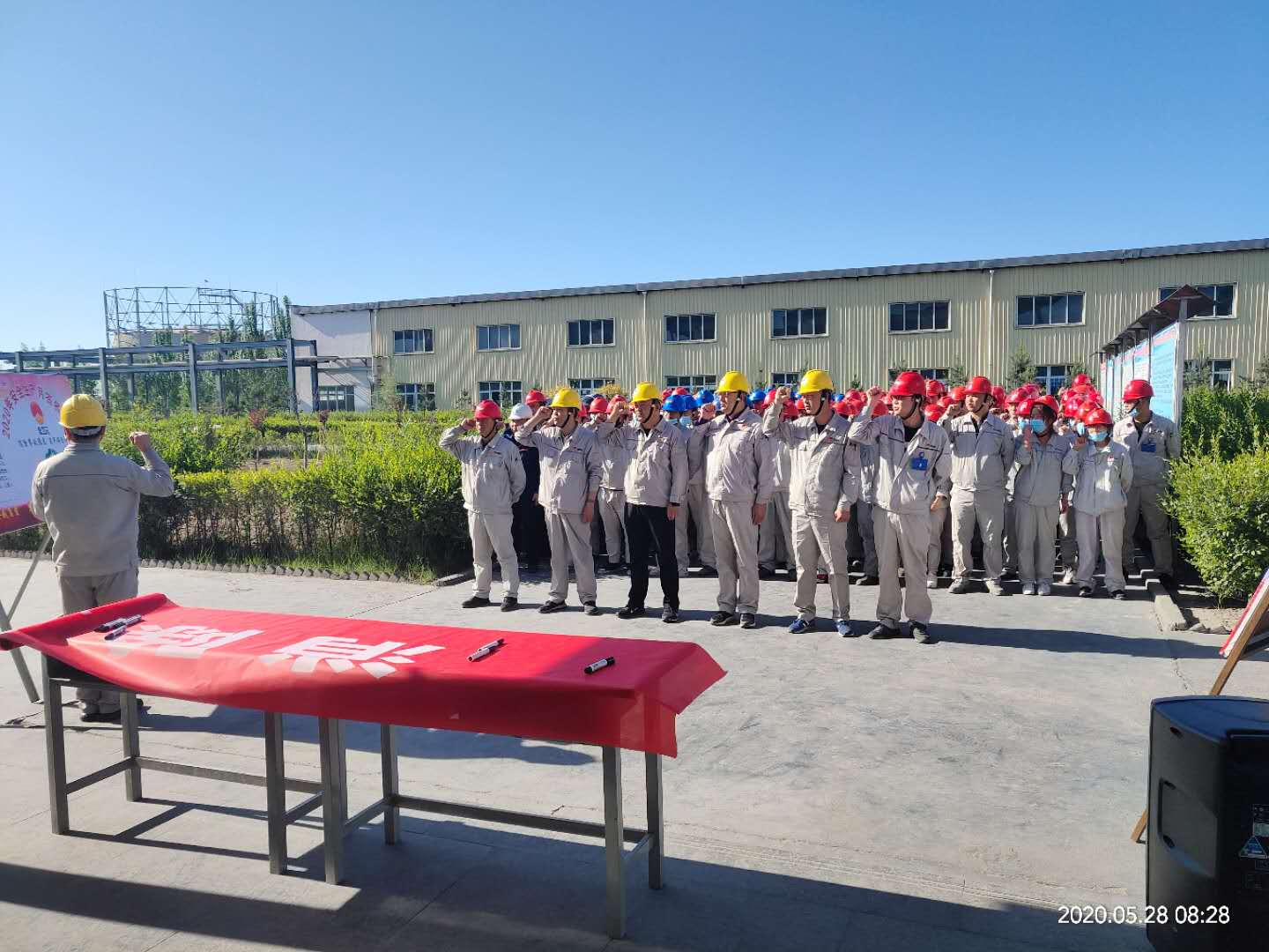 寧夏金昱元炔烴節能有限公司于2020年5月28日組織開展以“消除事故隱患、安筑牢安全防線”為主題的安全月宣誓簽名活動。
