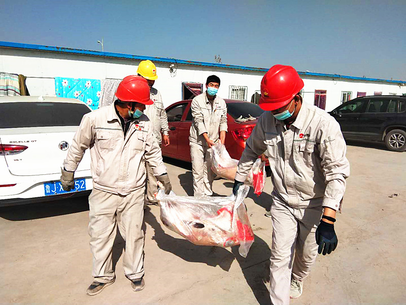 進入深秋,天氣漸冷,興昊永勝鹽業公司3#鍋爐建設也進入了關鍵的收尾階段,為了向奮戰在一線的建設工作者們表示感謝,10月23日,鹽業公司副經理張建東一行,到山東洪典項目建設部,為他們帶去羊肉等慰問品,讓建設工人在寒秋季節真切感受到我們誠摯的問候。