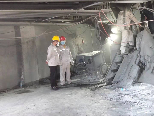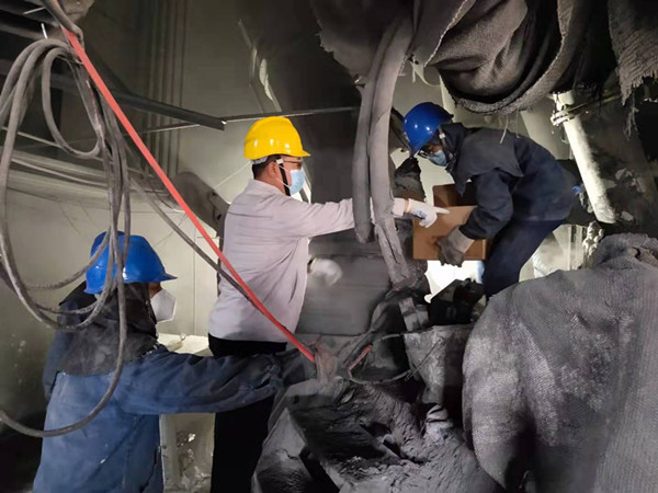 檢修開始時對現場可能存在的危險有害因素進行分析評估,制定檢修方案,落實安全應急救援措施,壓實各級管理人員責任,要求相關單位人員深入檢修現場,積極參與檢修中,檢修現場到處都是忙碌的身影,都記錄著一個動人的故事,也是一幅描繪生動的人物素描,總經理王鐵鎖不辭勞累奔波在凈化系統與爐面更換設備現場,落實安全措施同時對安裝下料柱人員,底部環的規范性做出指導。