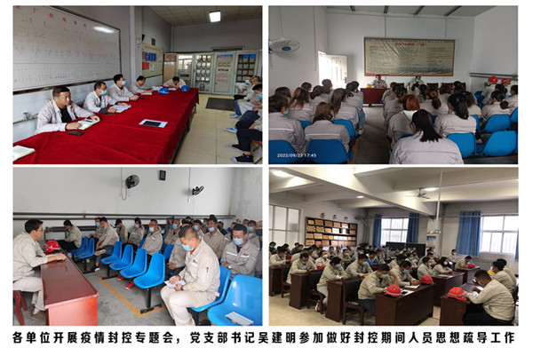 自疫情暴發以來,公司高度重視,按照集團公司于9月23日下發《關于全面做好疫情防控的通知》,9月26日青銅峽片區下發《青銅峽片區疫情防控補充要求》,馬上嚴格執行疫情防控工作。能源化學公司綜合科劃定責任區落實到個人,嚴格做好單身樓、公寓樓、辦公樓、餐廳消毒滅殺工作;嚴格做好全員健康碼、行程碼兩碼查驗工作;嚴格做好每天疫情防控統計上報工作(人員外出返青、外來人員入青以及員工居家隔離動態變化情況);嚴格做好餐廳消毒、人員測溫、環境衛生、食品安全、安全用電工作;嚴格監督管理禁止人員聚眾賭博和班前酗酒;嚴格做好澡堂管理工作早上8:30至晚上8:00全天供應熱水,做好疫情防控和后勤保障工作;黨支部積極號召黨員做好志愿者,發揮黨員先鋒作用做好職工思想疏導工作。