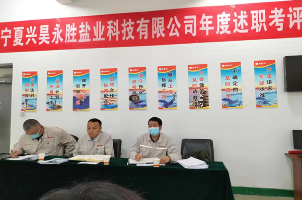 2022年12月4日上午,寧夏興昊永勝鹽業(yè)科技有限公司組織召開2022年度管理人員述職考評會,聽取管理人員履職情況、管理目標和重點工作完成情況、分管工作和本人履職中存在問題及下一年的工作思路。