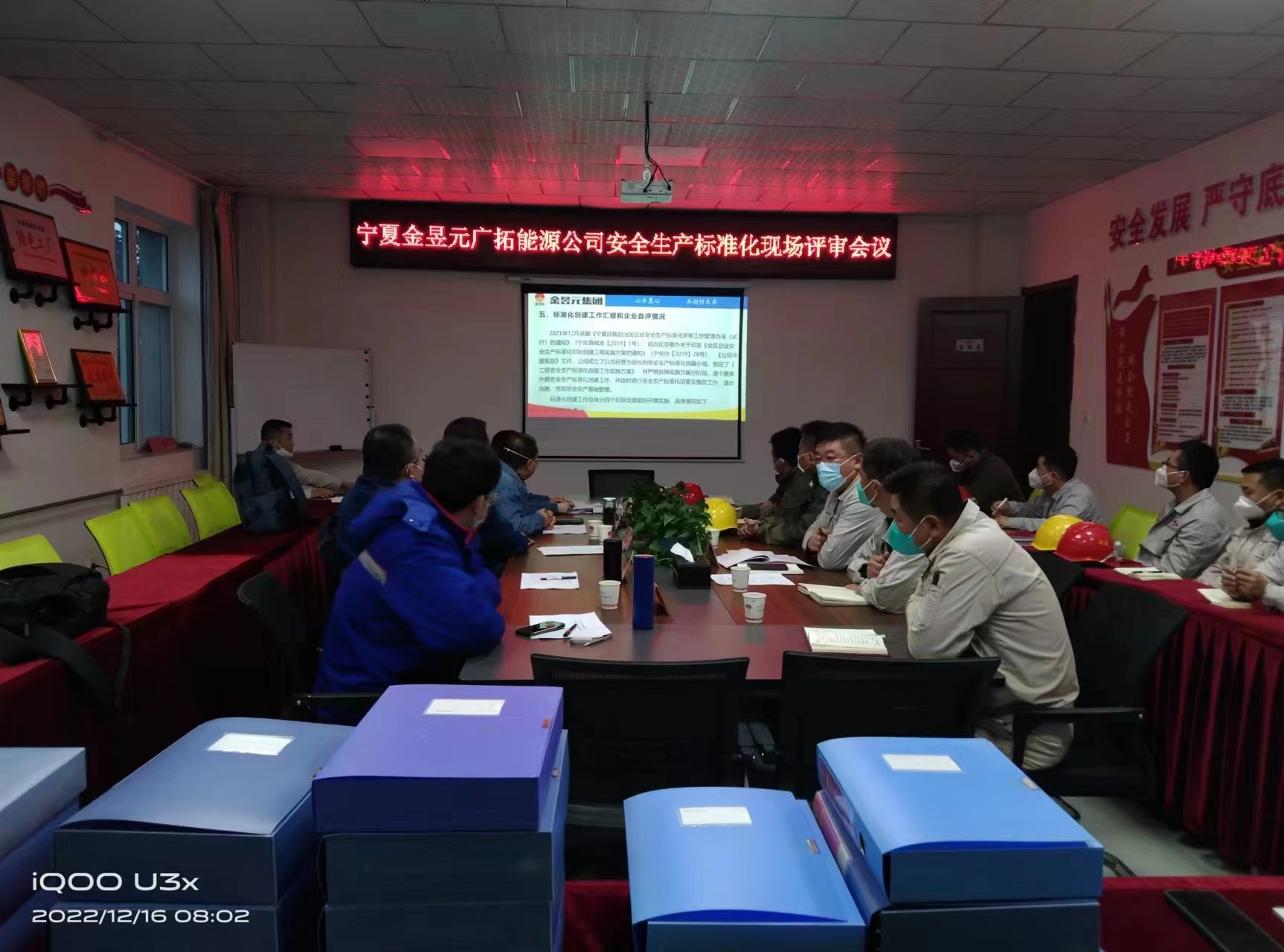 2022年12月15日,安全生產(chǎn)標(biāo)準(zhǔn)化評(píng)審專家一行5人,在固原市應(yīng)急局及管委會(huì)的陪同下,對(duì)金昱元廣拓能源有限公司二級(jí)標(biāo)準(zhǔn)化進(jìn)行達(dá)標(biāo)評(píng)審。固原片區(qū)管理中心副總經(jīng)理湯洪冰、廣拓能源總經(jīng)理賈存富等參加。