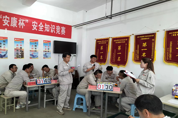 競賽活動共有四個代表隊參加,競賽題目以安全生產知識題庫為主,設置了必答、圖表、搶答、特殊作業(yè)票證管理知識題、現(xiàn)場實操題及觀眾搶答等題型。比賽現(xiàn)場,無論是參賽隊員還是現(xiàn)場觀眾,大家都是準備充分,積極踴躍參與,你追我趕、互不相讓,一次次的將競賽推向高潮。本次“安康杯”知識競賽活動對提高安全生產知識、安全生產技能和員工應急救援能力起到了很好的宣傳作用,對推進企業(yè)安全文化建設起到推動作用。