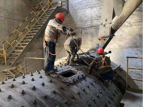 目前,已經完成了3401提升機,更換頭部齒圈,料斗,組合選粉機、O-sepa選粉機、檢查軸承座、葉輪、聯軸器(更換磨損的尼龍棒),選粉機所有空氣斜槽更換透氣布,水泥磨更換一倉襯板和2823皮帶減速機更換油封、潤滑油等多個重點項目。