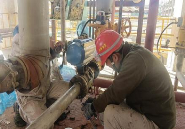 除了檢修泵,張強的焊接技術更是裝置里出了名的“一絕”。檢修期間,維修班的院子里,焊槍迸發的火花格外耀眼。維修班班長張強正半蹲在設備旁,專注地焊接一臺老舊閥門,隨著“滋滋”的聲響,焊槍穩穩落在密封面上,張強手腕微轉,焊錫均勻地鋪滿磨損處,熔池大小始終控制得恰到好處。焊接到關鍵接口時,他屏住呼吸,眼神緊緊鎖定焊點,生怕一絲偏差影響密封效果。火星在他手邊飛濺,他卻始終盯著熔池,直到最后一道焊縫完成。經過壓力測試,焊縫完全符合標準,沒有一絲滲漏。“強哥的焊口,就是質量的‘保證書’。”設備技術員高云翔提起這事,至今仍贊不絕口。