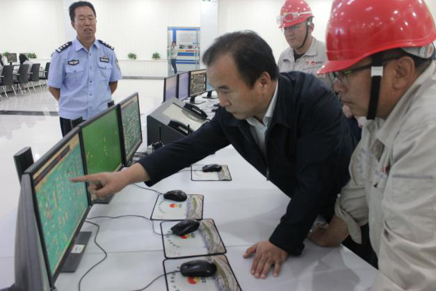 劉市長一行來到化工中控室,詳細(xì)詢問工作人員值班、中控臺(tái)控制操作、巡檢等情況。集團(tuán)公司副總裁、總經(jīng)理喬冠榮就公司生產(chǎn)經(jīng)營、安全環(huán)保、隱患排查等方面工作做了詳細(xì)匯報(bào),并就劉市長提出的相關(guān)問題一一作了解答。