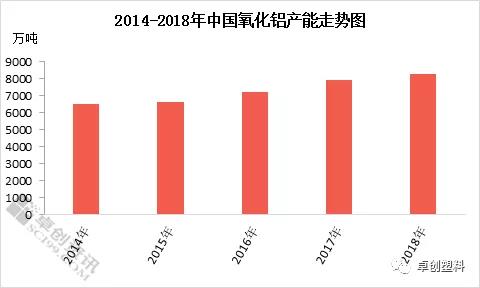 其中2018年全年中國氧化鋁建成產能8280萬噸,同比增長4.7%。據卓創監測數據統計,2018年全年氧化鋁產量為7253.1萬噸,同比增長19.6%。對于氧化鋁廠而言,隨著國內高品位鋁土礦資源的日漸消耗,國產礦氧化鋁廠新增產能的投放勢必受到影響,特別是在環保督查嚴格化、常態化的情況下,未來鋁土礦的供應極可能成為國產礦氧化鋁廠產能增加的瓶頸。