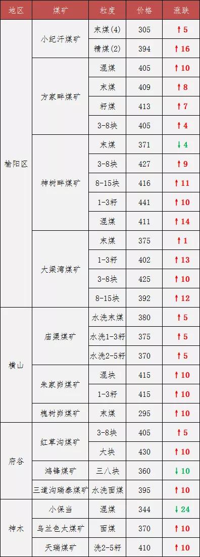 最新調(diào)價煤礦: