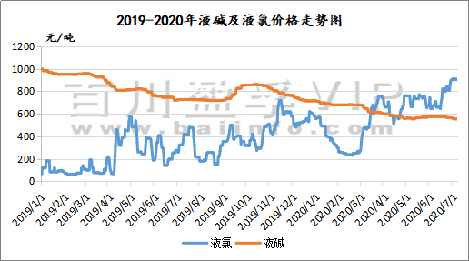 南方地區來看,下游粘膠短纖、印染行業盈利狀況不佳,受全球公共衛生事件波及,進出口貿易受到制約,預計下半年多以以弱勢盤整運行為主,江浙一帶32%離子膜液堿價格多在價格在560-750元/噸之間波動。華南地區液堿多以船堿為主,下游陶瓷、玻璃等企業開工不佳,公共衛生事件波及進出口貿易,預計下半年華南地區以平淡運行為主,廣東一帶50%離子膜液堿出庫價格多在1170-1300元/噸之間波動。