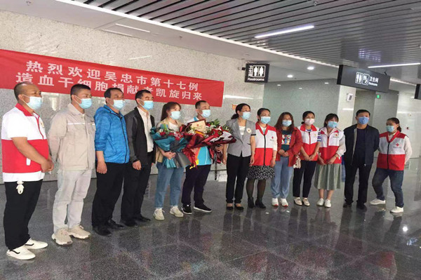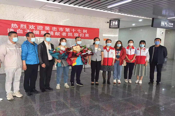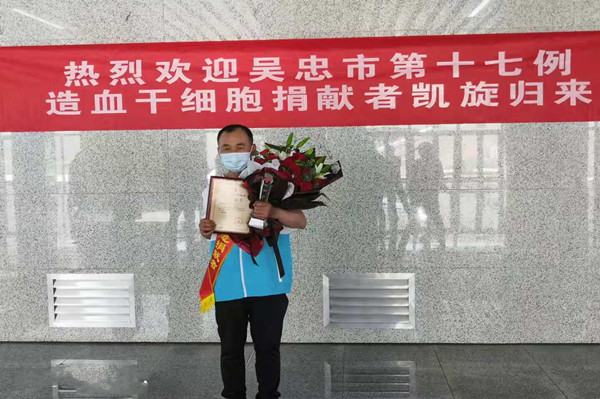 5月12日,劉治成返回吳忠,集團公司黨委副書記王立軍、支部書記唐亮等領導,熱烈迎接這位造血干細胞捐獻者獻凱旋歸來。