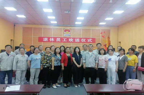 7月9日上午,金昱元集團舉行退休員工歡送儀式。參加退休儀式員工近40人,活動儀式由集團公司工會副主席李新主持,集團公司黨委書記、工會主席王立軍等領導參加了活動儀式。