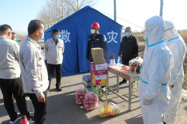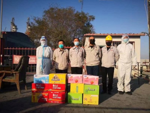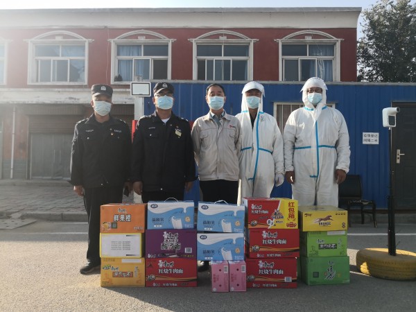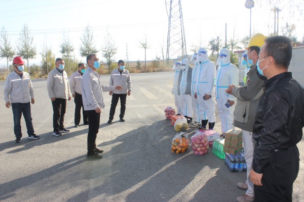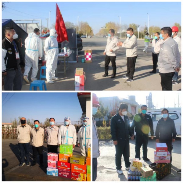 為提振士氣、鼓舞斗志,堅決打贏疫情防控阻擊戰,10月31日、11月1日,寧夏金昱元化工集團股份有限公司總裁喬冠榮,監事會主席郭復生,黨委副書記尚興,副總裁、固原片區總經理王立軍,副總裁、青銅峽片區總經理張立軍等領導組成慰問組,分別到固原片區和青銅峽片區各疫情防控卡點慰問奮戰在一線的防疫人員。