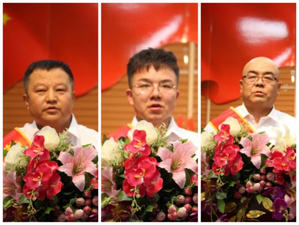 勞動模范:左:資源循環(huán)公司 席文童;中:廣拓能源公司 麻玉龍;右:炔烴節(jié)能公司 金學鋒