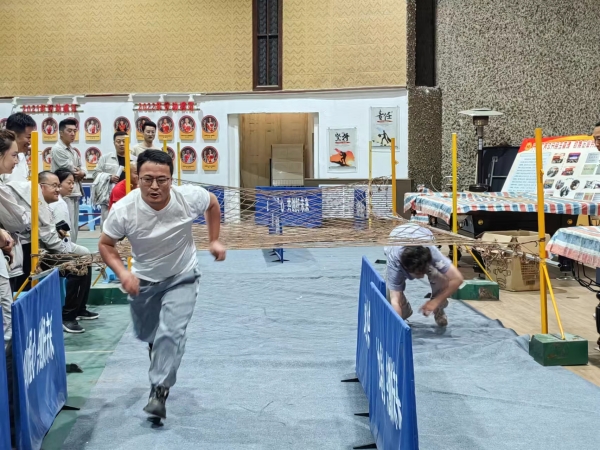當起跑令發(fā)出后,運動員們?nèi)珉x弦之箭,快速啟動,穿越門洞,匍匐前進,繞凳而行,原路返回……一整套動作如行云流水,他們拼速度、搶時間,不甘落后,速度與耐力碰撞出激情,技巧與效率彰顯出風采。
