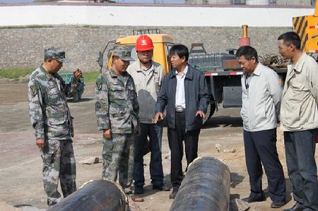 2014年公司領導現場指導為部隊暖氣管道的安裝工作